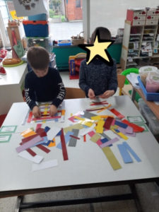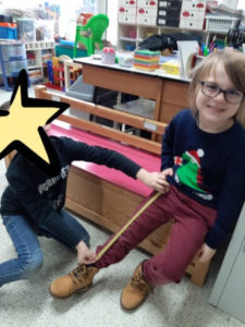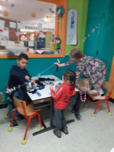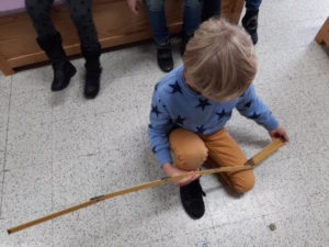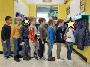Ils ont vécu différentes mises en situations pour évoquer la hauteur. Les élèves se sont rangés par ordre de grandeurs en comparant leurs tailles.