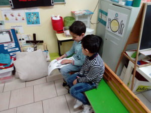 Les élèves de P1 étaient fiers de pouvoir montrer aux plus petits qu’ils commençaient à savoir lire.