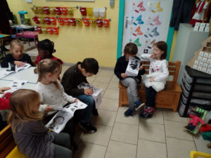 Ce vendredi 6 décembre, les élèves de Madame Virginie (P1) sont venus lire un petit livre aux élèves de Mme Marie-Hélène (M2/3 B ).