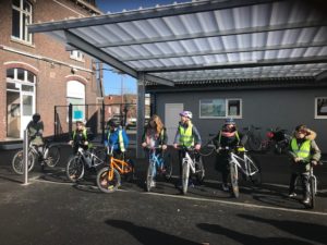 C’est parti! Le mardi 03 mars les 5e année de Mme Pauline ont enfourché leur vélo pour la première sortie en ville!
