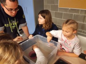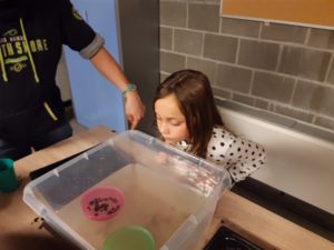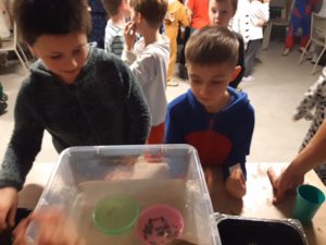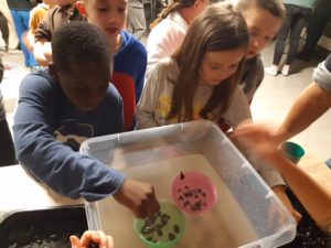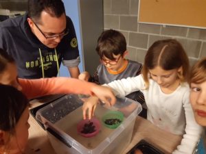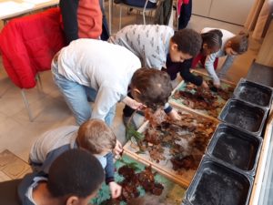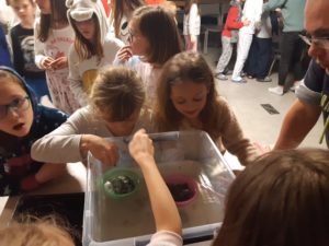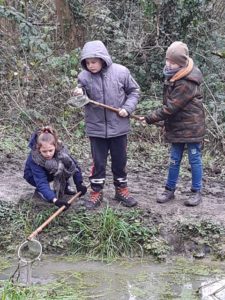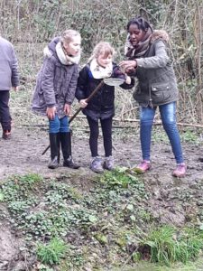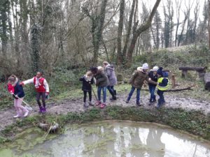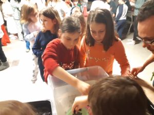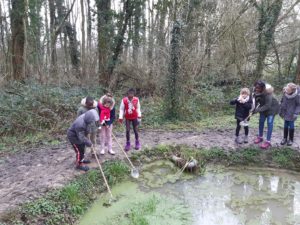 La mare aux crapauds était une activité durant laquelle les enfants ont pu s’essayer à la pêche avec des épuisettes dans une mare. Les différentes choses attrapées étaient ensuite mises dans des bocaux afin de pouvoir les observer et leur donner un nom. Les élèves ont ainsi pêché des tritons, des moules, des vers, …