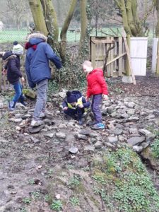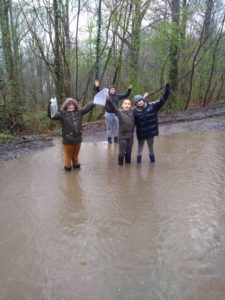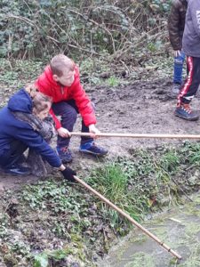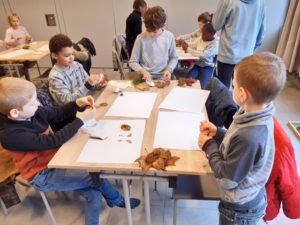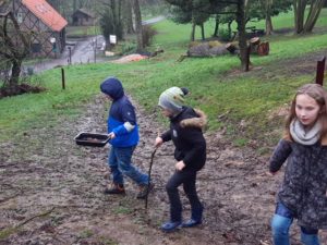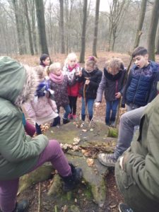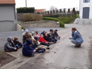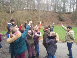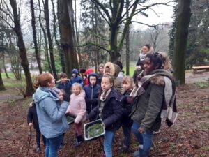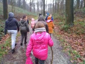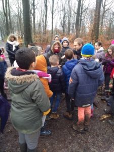 Vers 14h, le rallye photos a commencé par équipe (P3 et P4 mélangés). Le but était de retrouver son chemin grâce aux différentes photos que nous possédions. Les enfants ont ainsi profité de la forêt durant une balade de +/- 2h. L’état assez boueux de la forêt n’a pas du tout effrayé les enfants, bien au contraire !