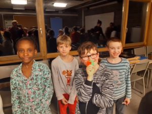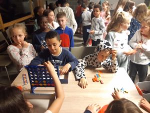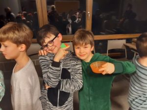 Afin de digérer avant d’aller dormir, les enseignants avaient préparé un petit quizz en équipes contenant un blind test spécial Disney, quelques questions et un « N’oubliez pas les paroles ». Les enfants ont pu donner de la voix pour chanter les différentes chansons et surtout lancer leur cri d’équipe.