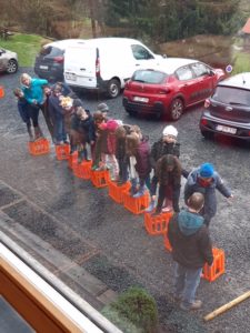 L’activité Team building avait pour but de consolider l’esprit d’équipe de la classe. Pour ce faire, de nombreux jeux ont été réalisés pour favoriser la discussion, l’entre-aide entre les élèves.