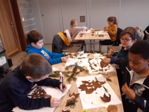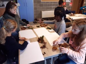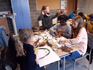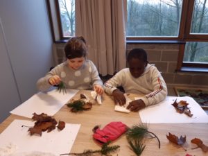 Le set de table nature a commencé par une recherche dans la plaine de nombreux éléments de la nature plats. Avec ces différents éléments, les élèves ont dû créer un lutin. Cette œuvre a été plastifiée afin qu’ils puissent l’utiliser comme set de table.