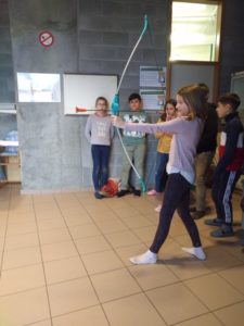 Tir à l’arc : durant une bonne heure, nous avons pu nous essayer au tir à l’arc. Il a d’abord fallu apprendre à le tenir et puis ensuite viser et s’améliorer au fil de l’activité.