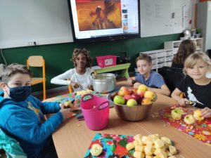 Au sein des classes de 4ème année A et B, chez Mesdames Marie-Elise & Orlane, les élèves feront une recette par mois dans le cadre du projet sur l’alimentation.