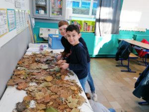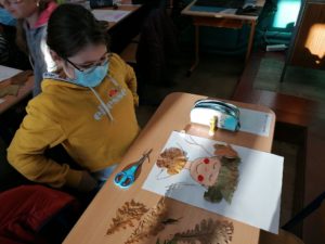 Lors du cours de développement artistique, nous avons travaillé avec des feuilles et autres fruits provenant de la nature.