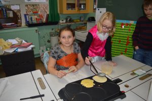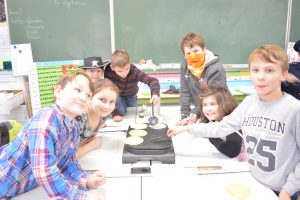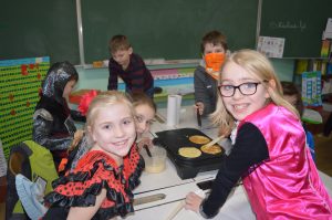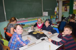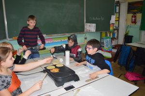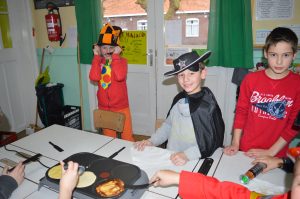 Le vendredi 5 février, les élèves de la 4ème B ont fêté la Chandeleur ainsi que le carnaval. Ils ont cuit eux-mêmes leurs crêpes pour ensuite les déguster tout en faisant la fête. Lors de cette journée, nous avons pu admirer de nombreux déguisements allant de policier à princesse ou fée, en passant par Violetta, Dark Vador et même Mme Mélanie et Mme Marion ! Ce fut une belle après-midi pleine de gaieté et de bonne humeur.