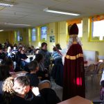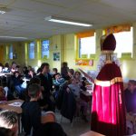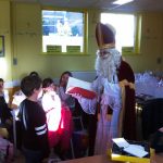 Saint-Nicolas en 4e année Le grand saint est venu à l’école. Les élèves lui avaient préparé diverses chansons. Ensuite, des élèves ont été appelés pour recevoir une gentille mise en garde. Mais tout s’est bien terminé car St Nicolas n’était pas venu les mains vides !
