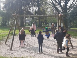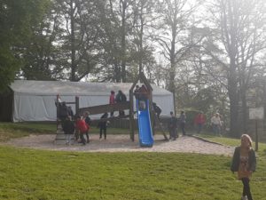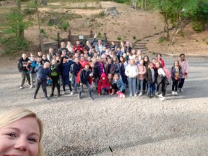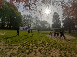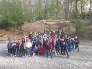 Classe Verte : Avis de bonne arrivée ! Tout le petit monde est bien arrivé à Amougies un peu avant 10.00Le temps de s’installer que la première activité débute … découverte du domaine.Cette après-midi, il s’agit d’un jeu de piste dans les bois sous forme de rallye-photo.